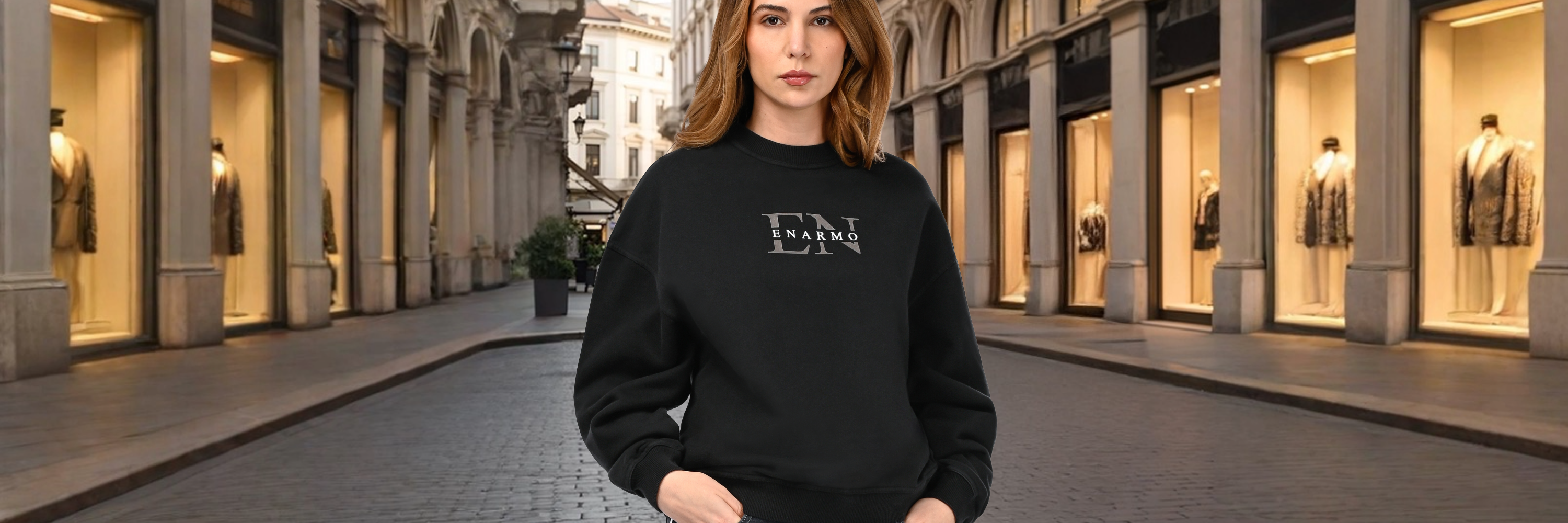 Black Cotton Sweatshirt – EN Monogram Anthracite/White